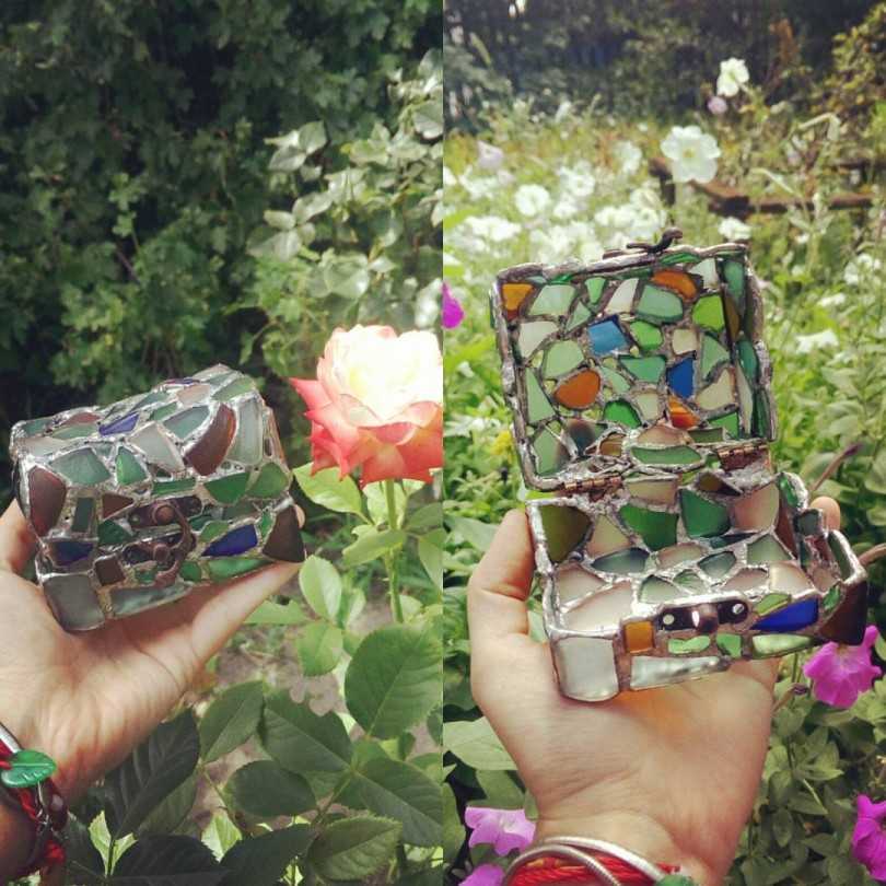 В подобной технике можно украсить зеркала, шкатулки, столешницы и т.д. Главное, тщательно рассчитайте количество необходимых осколков.