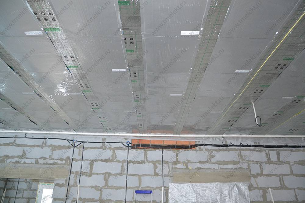 - Подбирают провод, устойчивый к большим нагрузкам. Его необходимо проложить внутри стен и потолка от ИК к терморегулятору.