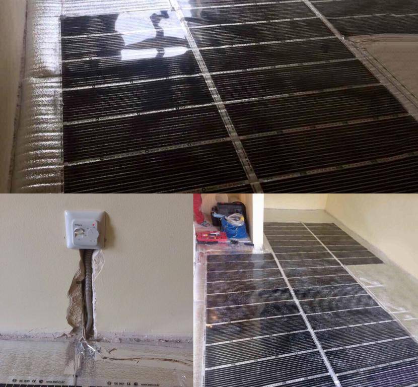 монтируется стержневой карбоновый пол на тонкий слой стяжки, такая электрическая