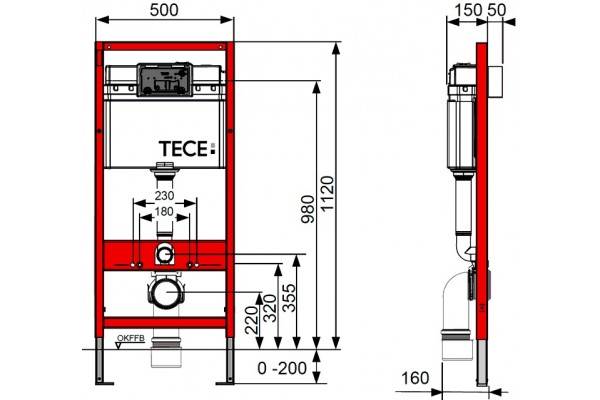 Минимальные габариты блочных инсталляций, как правило, идентичны аналогичным параметрам рамных конструкций. Их глубина может составлять от 10 до 15 см, а высота – до 1 метра. Также необходимо учитывать возможность раздельного монтажа встроенного бачка и чаши унитаза. Последняя в таких случаях крепится не в нише, а непосредственно к стене.