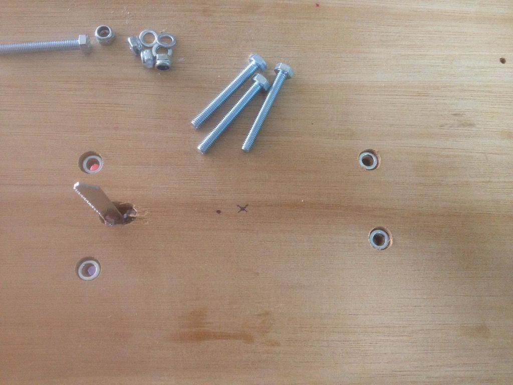 - В расширение каждого монтажного отверстия вложите шайбу, вставьте в отверстия болты и закрутите их с другой стороны гайками. Закрутить болты было немного сложно, поэтому я фиксировал головку каждого болта плоской отверткой, и крутил с другой стороны гаечным ключом.