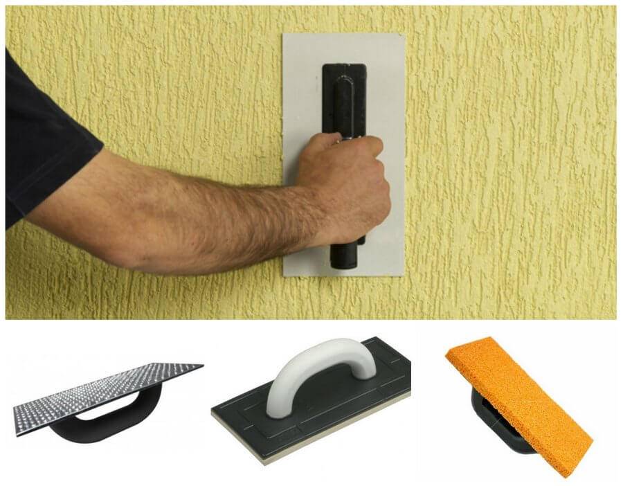 Кельма тёрка. Она выполняется из прочного пластика и используется для облицовочных работ. Благодаря ей удается выполнить технику короед. Она имитирует глубокие выступы на поверхности фасадной части здания.