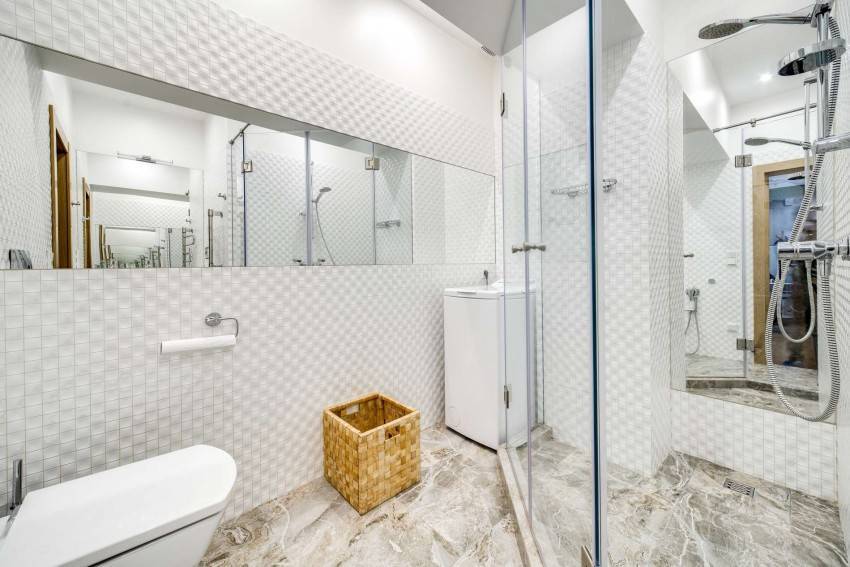 Простым и эффективным решением по увеличению свободного пространства считается установка душевой кабинки. Ванна – массивный объект, занимающий много места. Откажитесь от нее, если комната слишком маленькая.