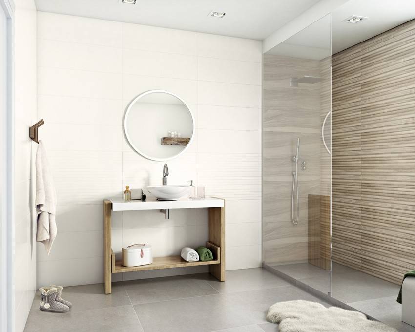 Ванная с модной рельефной плиткой
