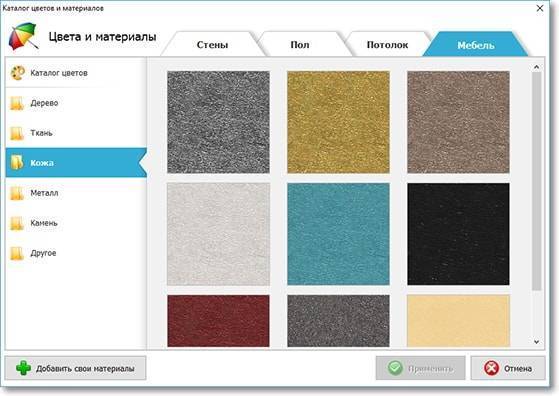 Этот софт является удобным инструментом, способным оказать помощь при планировании ремонта. В «Дизайне Интерьера 3D» вы легко и просто сможете воссоздать свой дачный домик, нарисовав стены вручную в удобном редакторе или же основываясь на настоящем плане жилища. Сразу после этого программа предложит выбрать отделочные материалы для помещений. Вы можете использовать текстуры из встроенного каталога или же загрузить собственные варианты.
