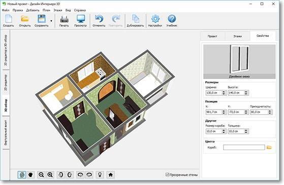 В программе можно передвигать окна и двери, добавлять перегородки и новые помещения