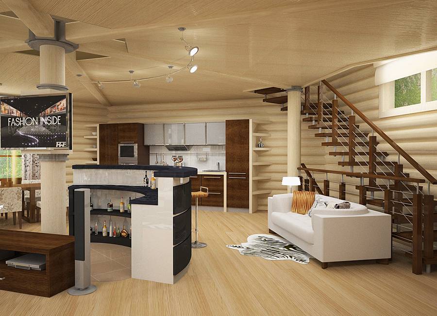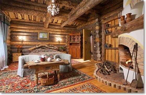 Интерьер кухни в деревянном доме с фото