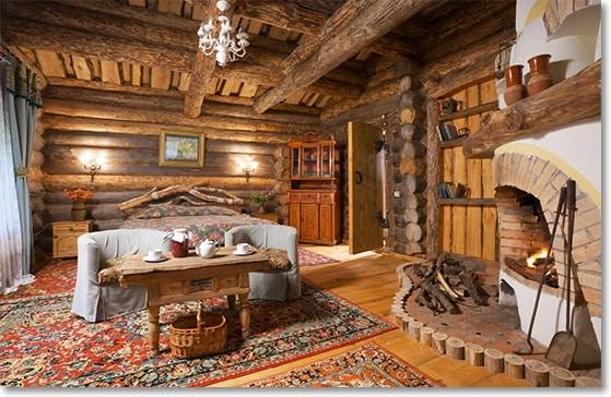 - ✓ Умеренность. Не стоит стараться сотворить из дачного дома полноценную квартиру, наполнять его современной техникой, клеить дорогие обои. Лучше попытаться сделать жилище более уютным, подчеркнув естественность. Добавиться подобного можно за счет мебели из натурального дерева.
