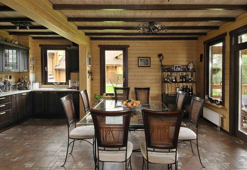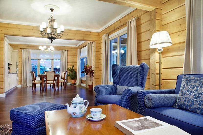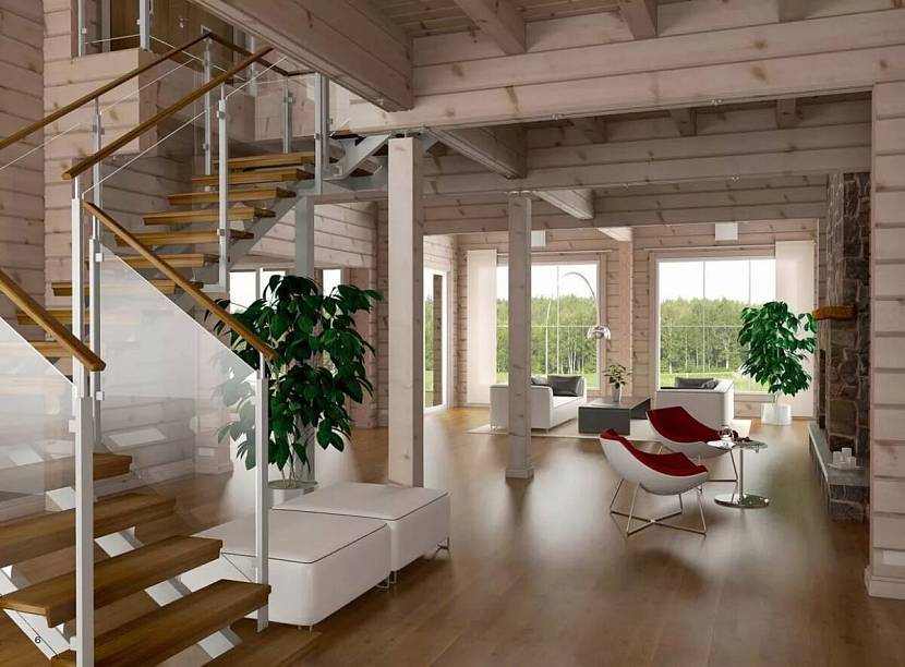 Профилированный и клееный брус: интерьер, фото домов внутри из этих материалов