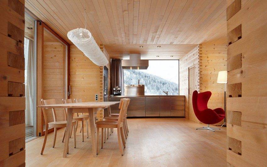 Дом из клееного бруса не всегда подразумевает русские мотивы. Его интерьер может сочетать грубоватое и очаровательное шале, необычные формы современной стилистики, органичные тенденции европейских дизайнов и многое другое.
