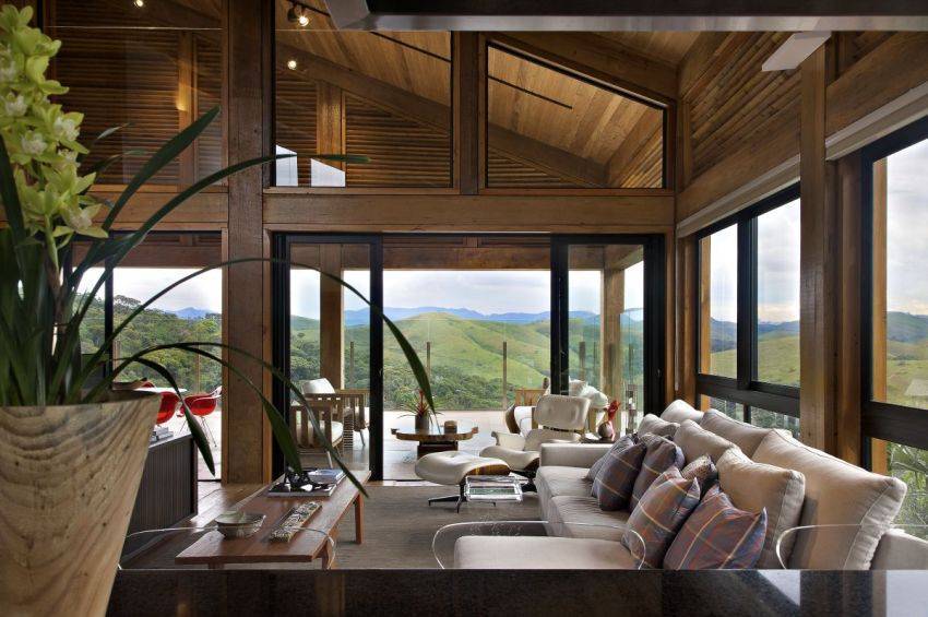 Французские окна от пола до потолка позволяют поддерживать связь с природой