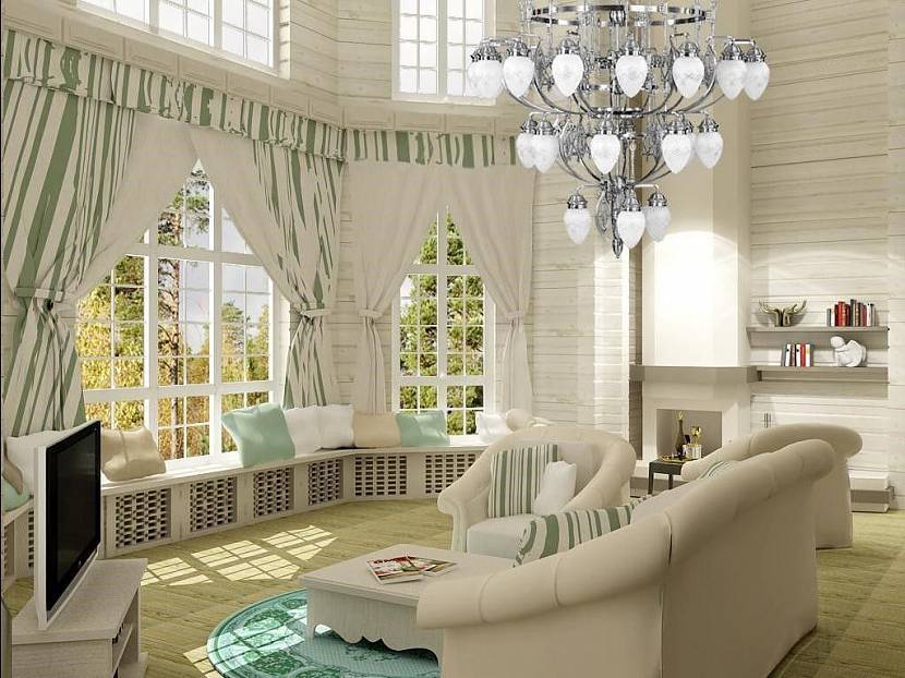Гостиная в стиле прованс в деревянном домеИсточник assz.ru
