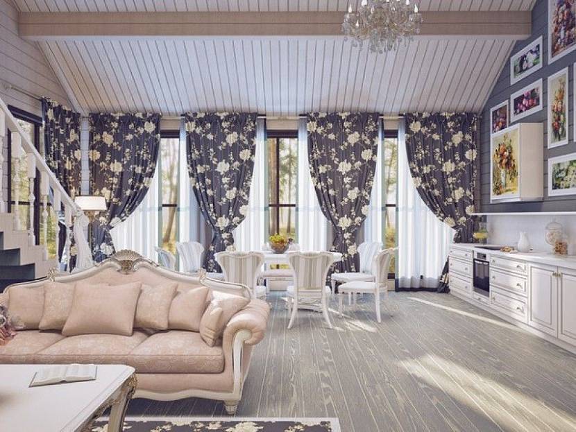 При желании можно придать интерьеру вид охотничьего домика. Кому-то больше по душе стиль прованс с его тягой к светлым тонам и фактуре окрашенного дерева. Такое решение отдает легкостью, оно приятно, стиль французской глубинки отдает оттенком винтажности. Иным нравится стиль бохо с его стремлением к пестроте. В этом случае фоновое оформление стен, потолка обычно смягчает обилие ярких пятен и текстиля, характерных для дизайна.