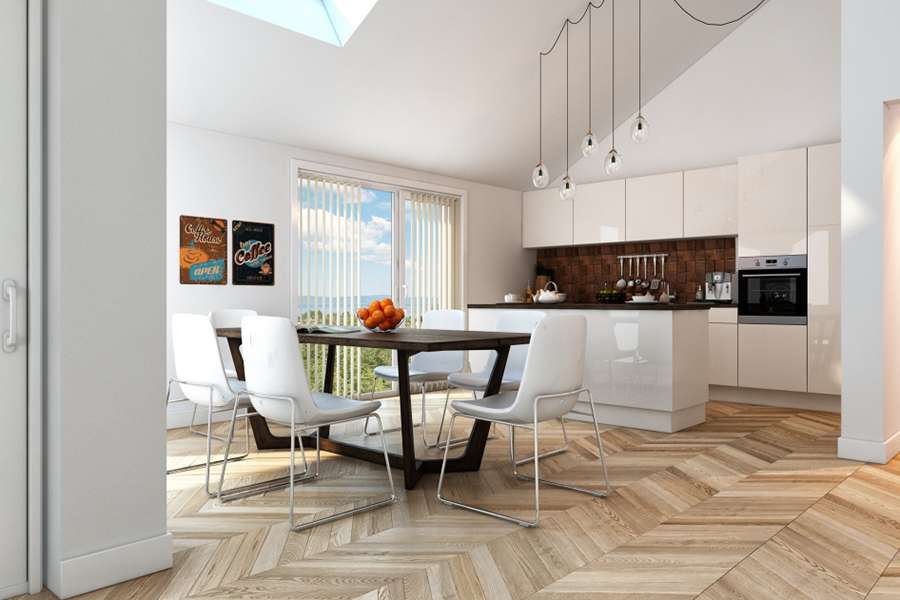 Небольшой кухне и столовой досталась самая темная и наиболее уединенная часть гостиной с открытой планировкой – здесь вам никто не помешает готовить ужин или наслаждаться чашечкой чая с десертом.