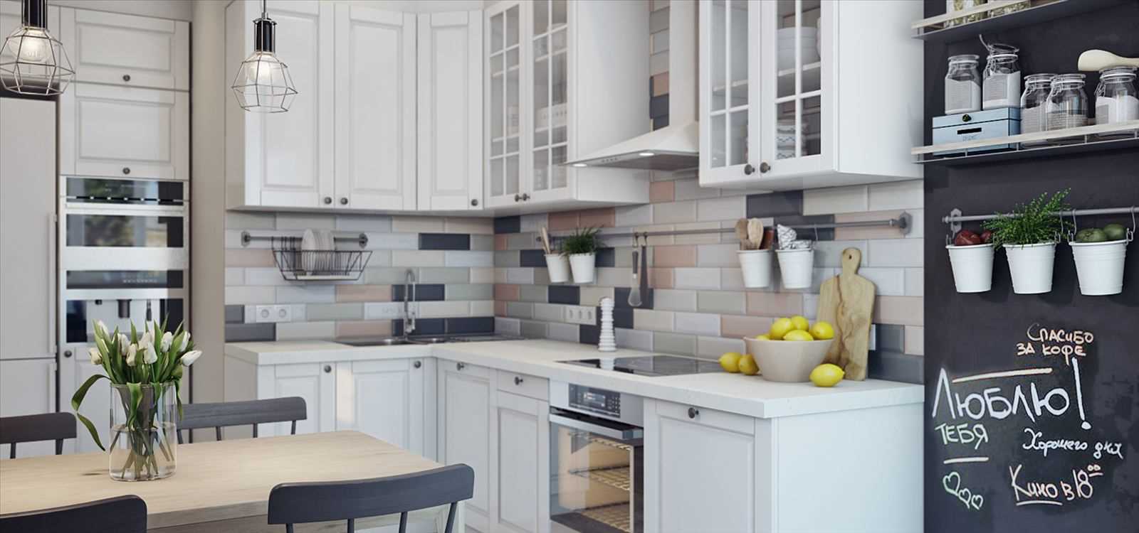 Фартук на кухне, выполненной в скандинавском стиле, как правило, выкладывают в одном из двух вариантов: