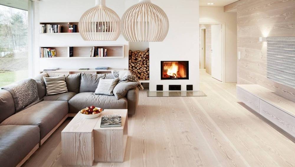 Для тех, кто хочет сделать интерьер гостиной светлой, отличной идеей будет организация внутреннего убранства «Скандинавским» типом. Его отличительными чертами являются свежесть, холодность помещения, разбавленная некоторой теплой отделкой.
