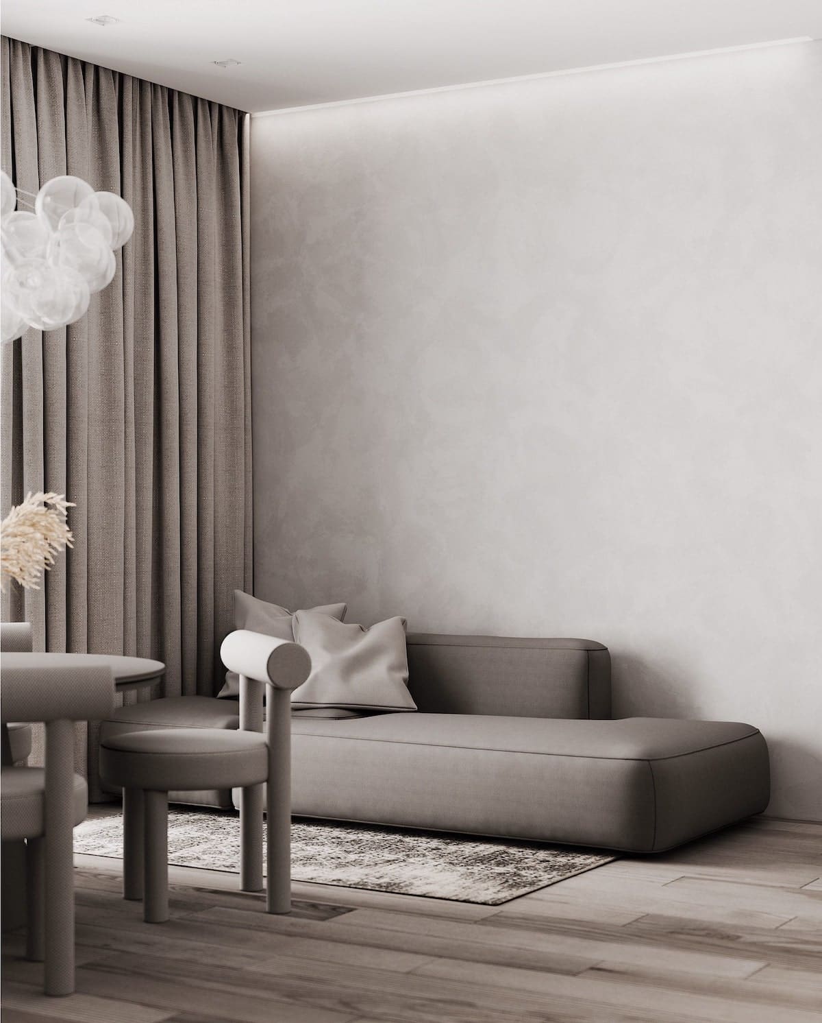 Лаконичный светло-серый цвет создаст идеальную цветовую базу в помещении, он выглядит нейтральным и благородным одновременно. Его можно сочетать практически с любыми оттенками: яркими или пастельными, глубокими или будуарными.