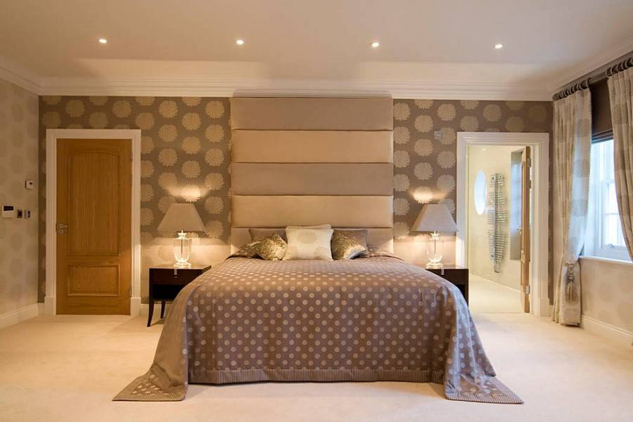 Если есть желание подчеркнуть какой-либо объект в спальне – кровать, изящный туалетный столик, камин, можно сфокусировать на нем внимание, умело скомбинировав обои