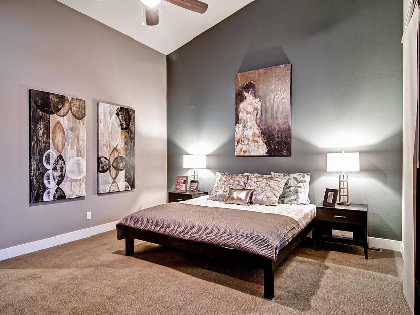 Этот цвет идеально смотрится в мужской опочивальне, снижая нервное напряжение и давая возможность хорошо отдохнуть. Однако если грамотно расставить акценты, то и женщине будет уютно в апартаментах, выдержанных в подобной гамме.
