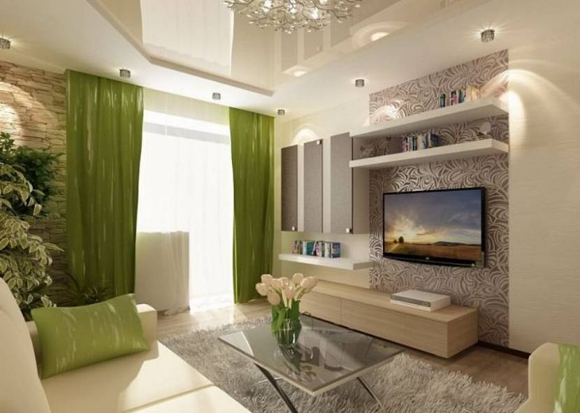Современную плазменную или LED панель можно сделать центром притяжения комнаты. Стену полностью или частично визуально рекомендуется выделить фактурными материалами или цветом.