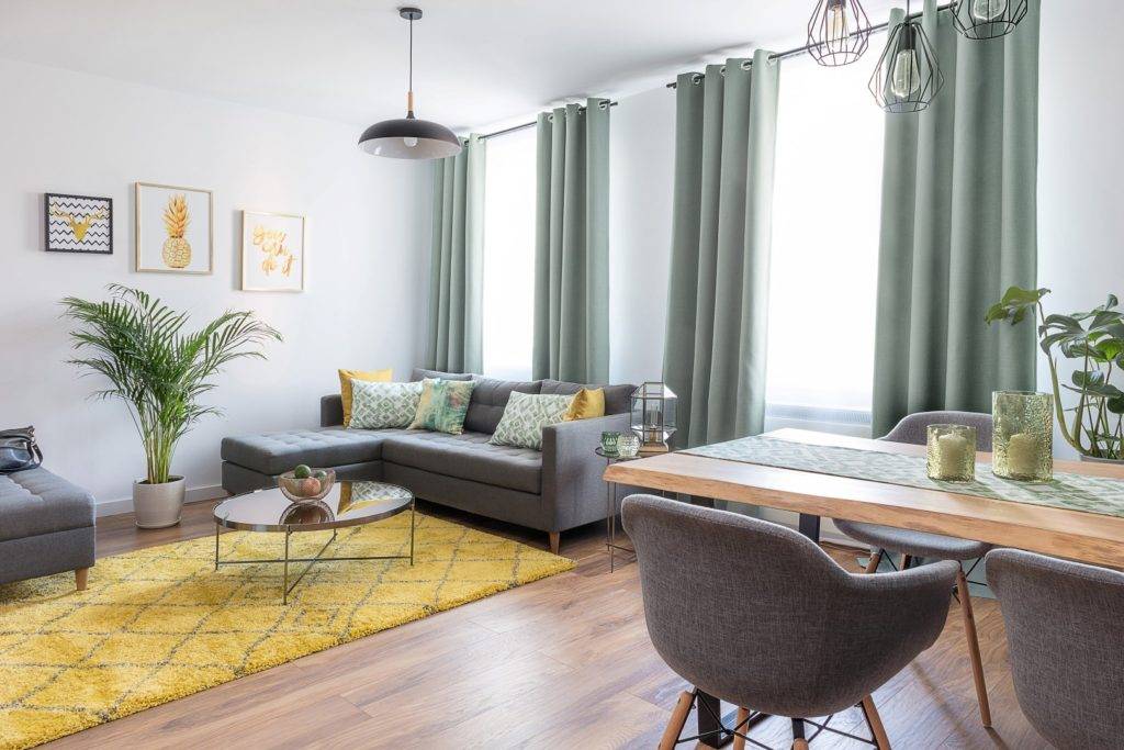 Если вы хотите применить желтый поэтапно, начните с дополнений. Это могут быть шторы, коврики, цветочные горшки, фоторамки, а также графика и постеры с ярко выраженным желтым цветом. Или, может быть, использовать мебель? В этом сезоне вы можете увидеть моду на желтую мебель. Диваны и кресла этого цвета обитые бархатом и велюром, интересно сочетают в себе энергию желтого с элегантным материалом. Конечно, вы также можете выбрать более современный и легкий в уходе материал, то есть хлопок, полиэстер или синтетическую кожу.