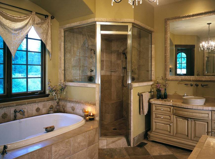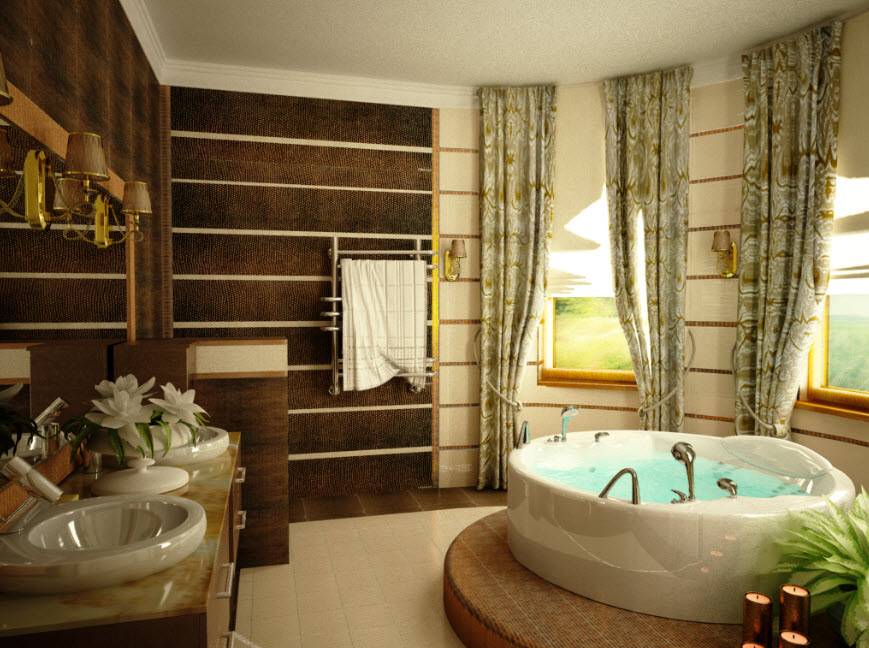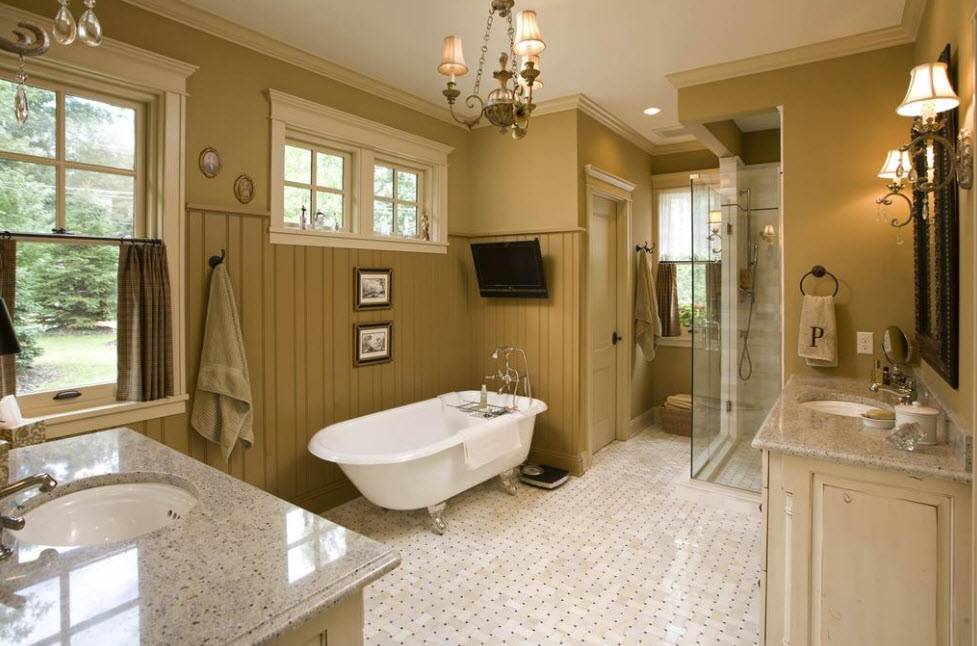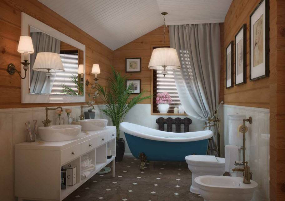 И конечно же, как и для любого помещения, следует определиться со стилем интерьера ванной комнаты в загородном доме