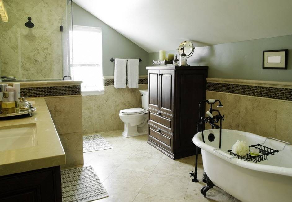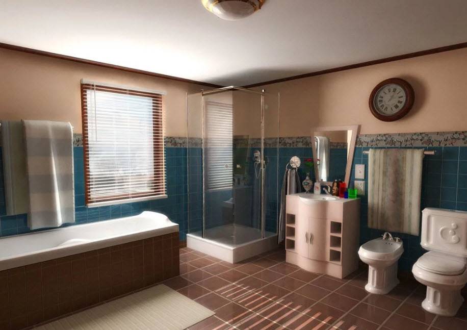 Но ведь интерьер ванной в частном доме зависит не только от материалов, но и от их окраса.