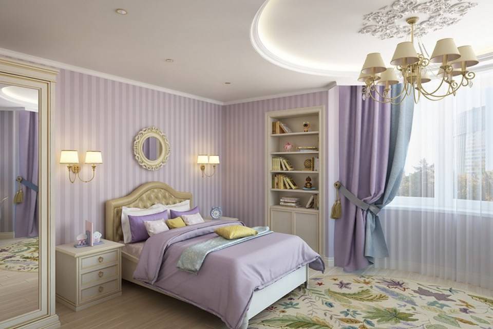 Комната в сиреневом цвете отлично подойдет для девушек
