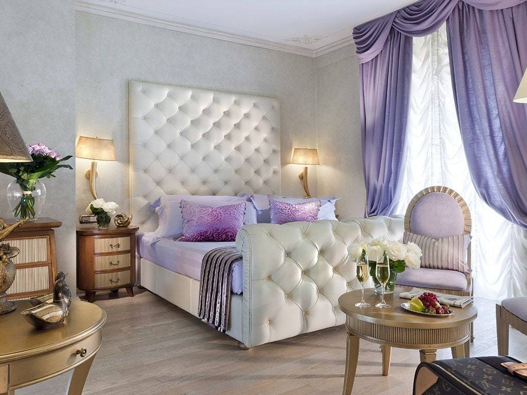 Сиреневый оттенок издавна пользовался успехом среди королевских семей и знати разных стран. Его считают таинственным и волшебным, он символизирует утонченность и говорит о сильной натуре, в душе которой скрывается ураган чувств. Дизайн спальни в сиреневых тонах выбирают творческие, самоотверженные, великодушные и чувственные личности с нестандартным и эксцентричным характером, однако не лишенные импульсивности.