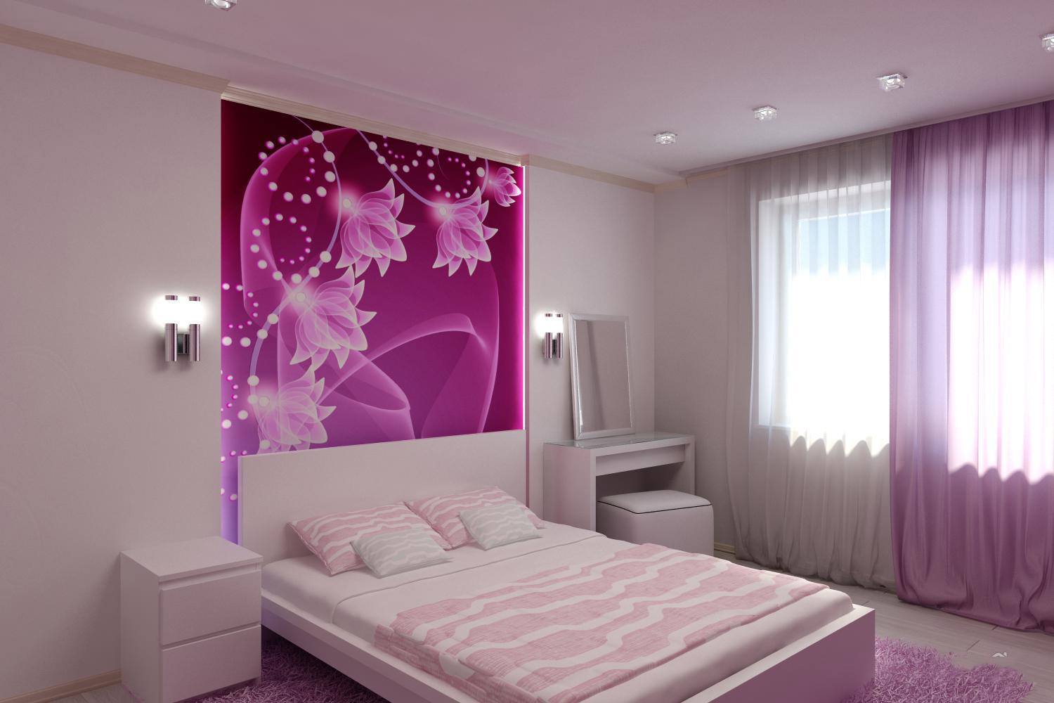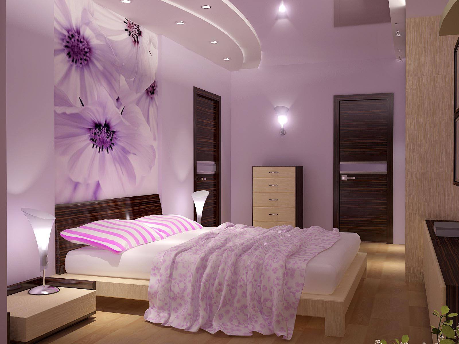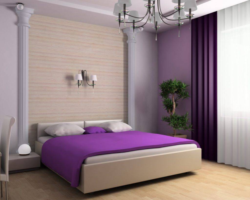 Воплощение дизайнерской концепции для спальни в фиолетово-сиреневых тонах