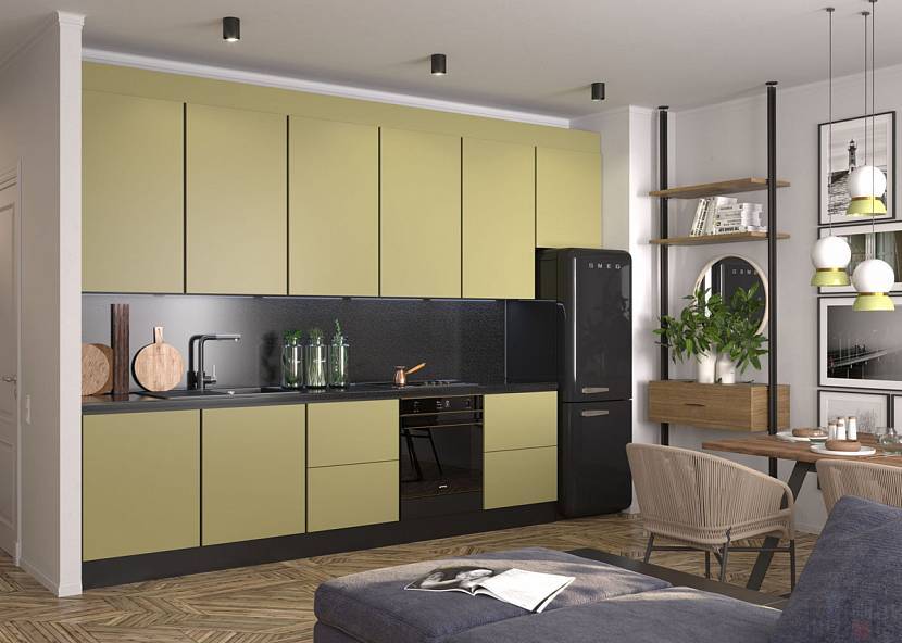 Подойдет кухонная мебель с лимонным, молочным или лавандовым фасадом. Это создает особый уют.