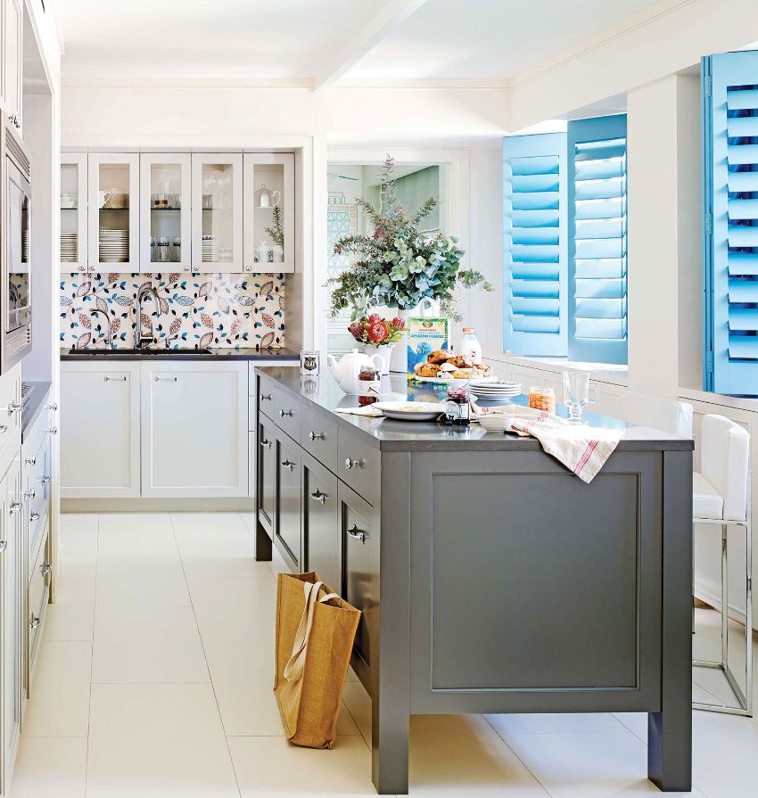 Стоит скомбинировать укладку панелей или плитки разных оттенков, используя синий в качестве сочного акцента. Зато фартук нежно-голубого или светло-бирюзового тона применяют с меньшими ограничениями.