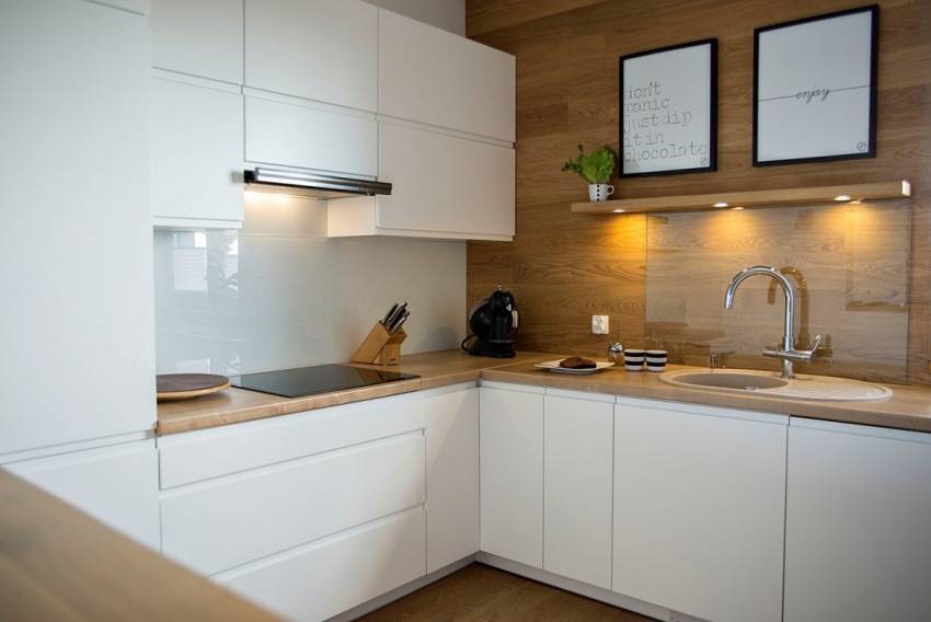 Натуральное дерево для отделки стен над рабочими поверхностями