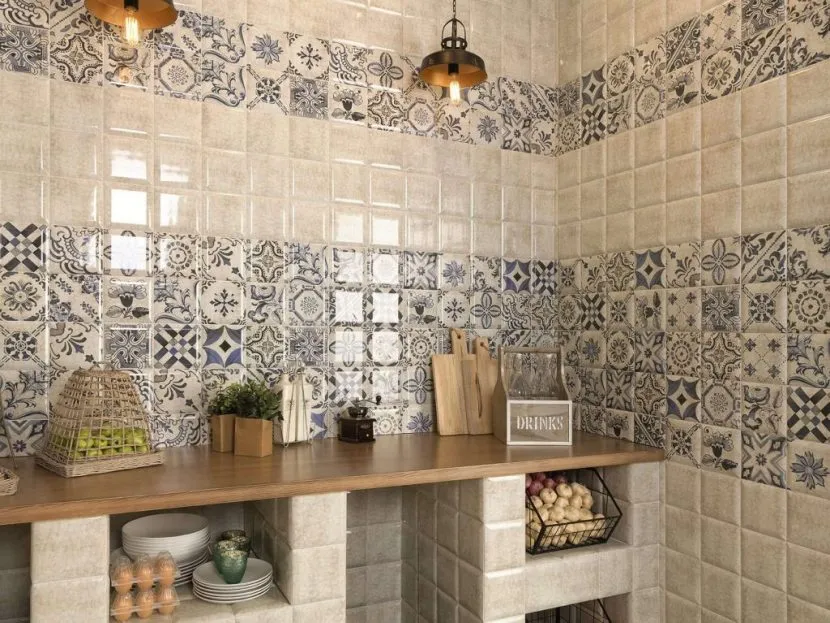 Чем разнообразить однотонный фартук из плитки на кухню: фото-примеры