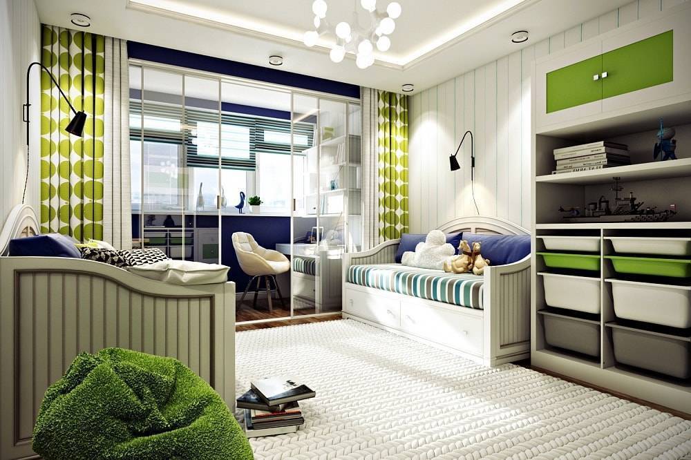 В данном случае вы можете дать свободу вашей фантазии и творить все, что угодно. Но не забывайте, что комната получится намного уютнее и привлекательнее, если она будет правильно зонирована. Для этого необходимо продумать дизайн балкона и интерьер детской комнаты в одном стиле.