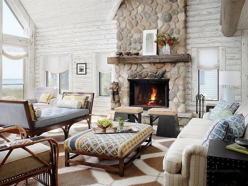 К этим стилям можно отнести прованс, гранж, кантри, шале, шебби-шик. В основном используют текстуры натурального камня в виде пластинчатого сланца, булыжника, песчаника. Каменный декор наряду с натуральным деревом доминирует в интерьере.