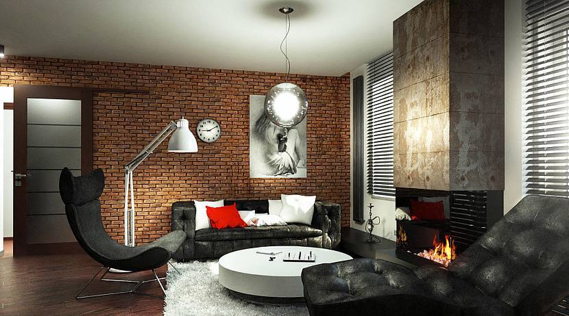 Комната с камином в стиле лофтИсточник pt.aviarydecor.com
