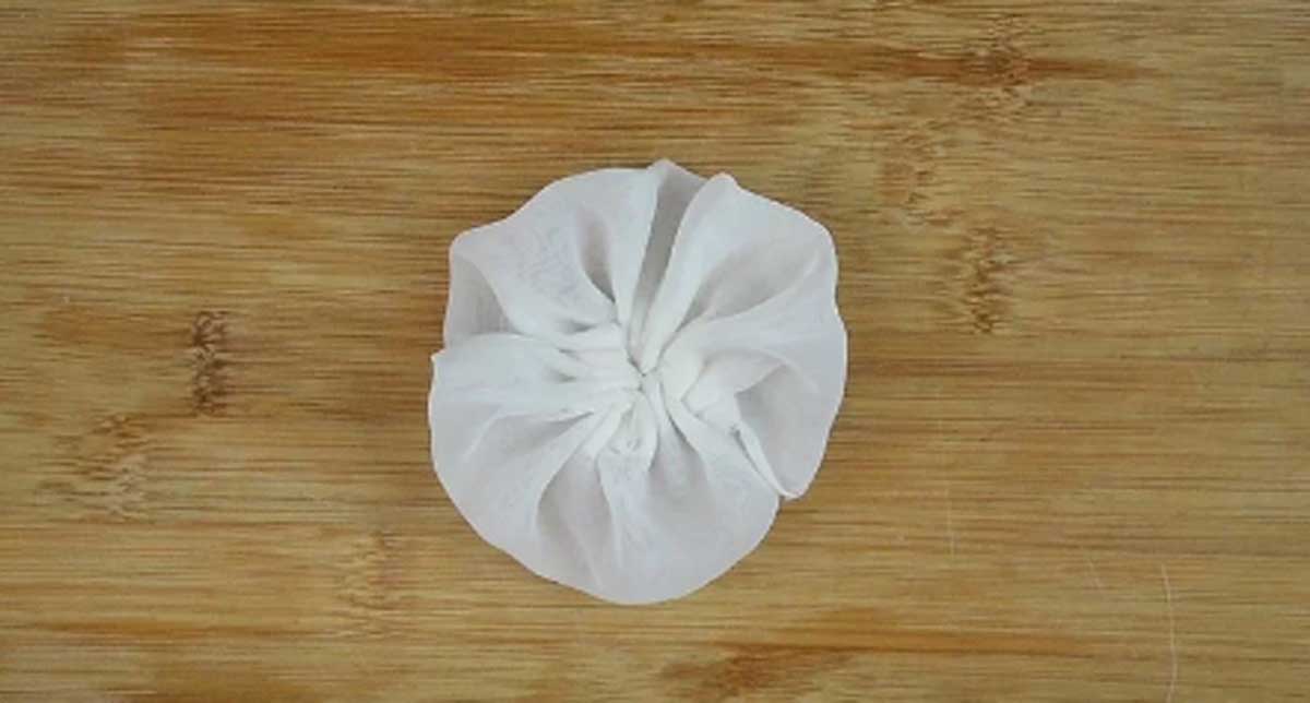 Сердцевина. Возьмите пару салфеток и сомните их в небольшой квадрат. У вас получится кубик. Оберните его в бумагу черного цвета, а нижние ее края сомните в косичку, как показано на фото.