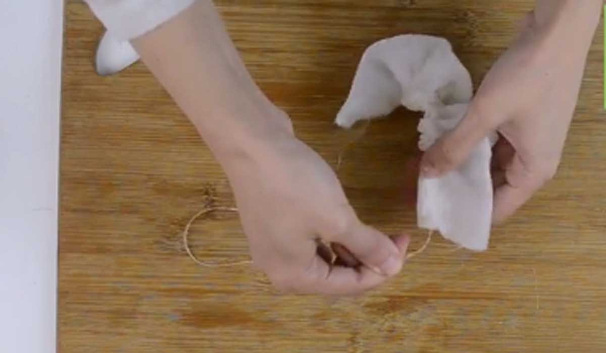 Три листка сложите вместе так, чтобы кончики с проволокой совпали. Скрутите три проволочных конца в одни.