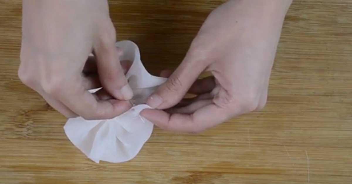 9.Сшейте собранные концы. Используйте конец нити, чтобы сшить собранные концы, чтобы сохранить розу в форме.