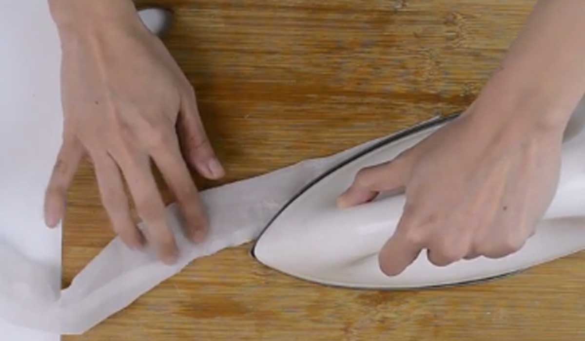 5.Выгладите концы утюгом. Не гладьте середину ткани, или цветок не будет иметь неприглядную складку.