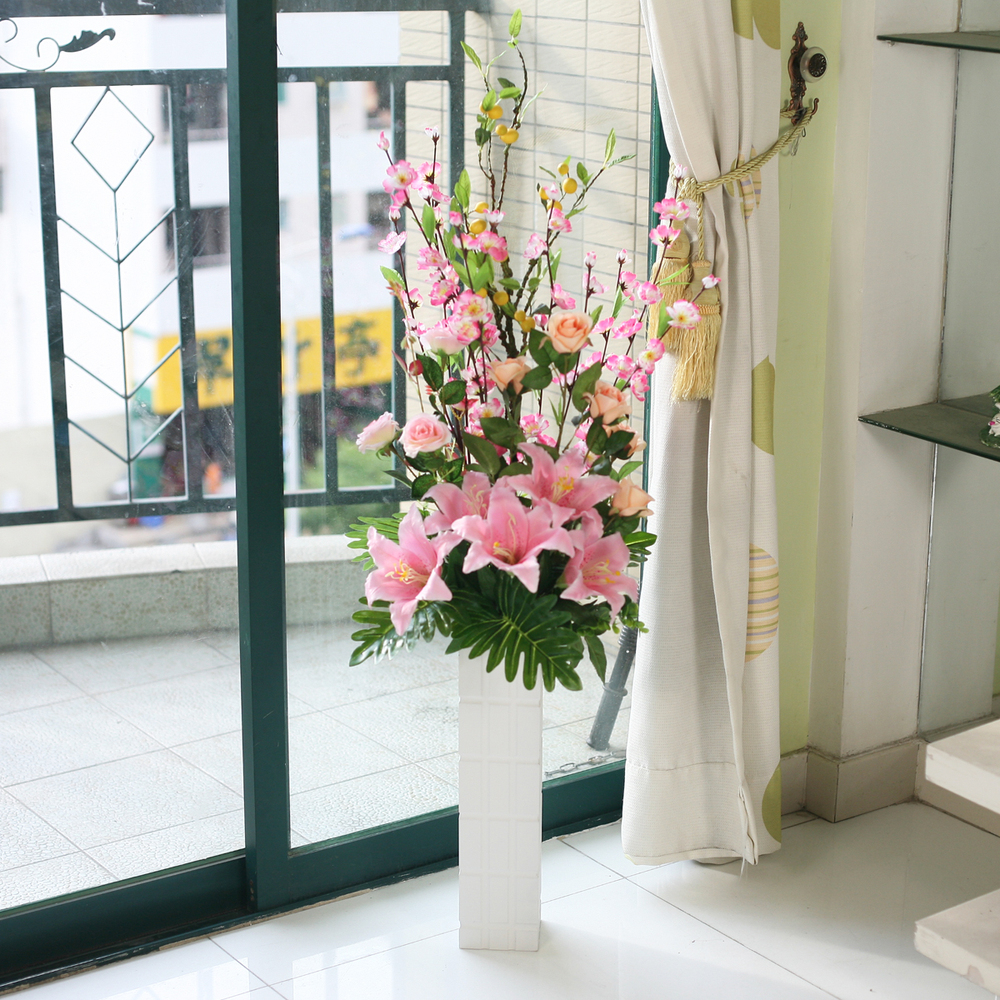 - кашпо с искусственными цветами – установленные на полу сосуды с растениями дают возможность устроить в помещении свой маленький оазис. Такой небольшой комнатный сад создаст у обитателей чувство комфорта и как бы единения с природой;