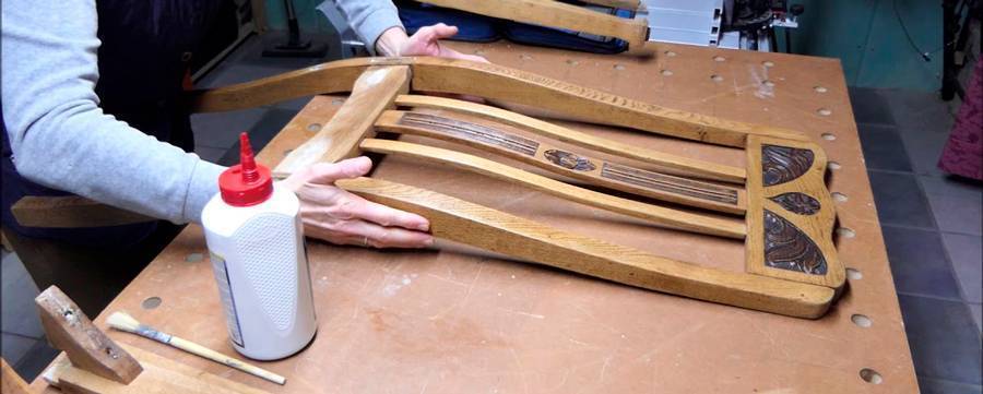 Если вы ремонтируете старые изделия, то сначала удалите прежний слой строительного клея. Для этого смочите тряпку водой и уложите ее на клей на два часа.