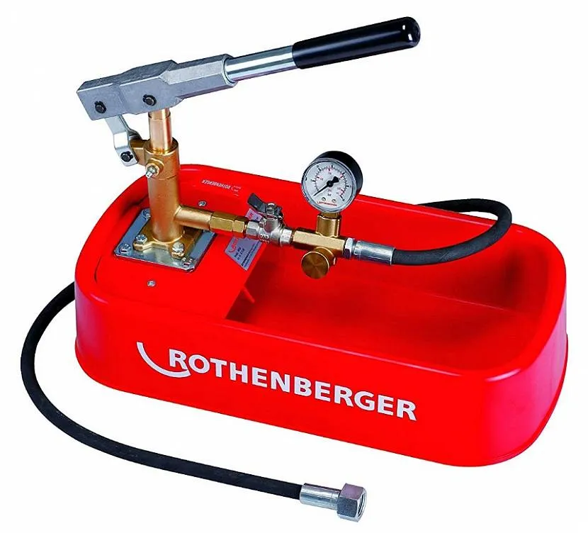 Для проведения проверки системы на устойчивость к высокому давлению используется специальное устройство, которое называют опрессовщиком. Он представляет собой насос, способный создавать давление внутри системы до 60 или 100 атмосфер в зависимости от типа механизма. Существует 2 вида насосов: ручной и автоматический. Они отличаются только тем, что второй вариант останавливает накачку сам, если давление достигло нужной отметки.