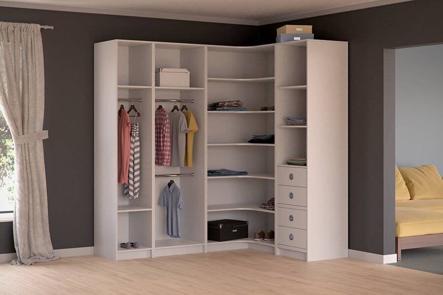 В планировании гардеробов нужно учитывать габариты комнаты или отведенного места под установку, количество вещей для хранения, закрытость/открытость системы.