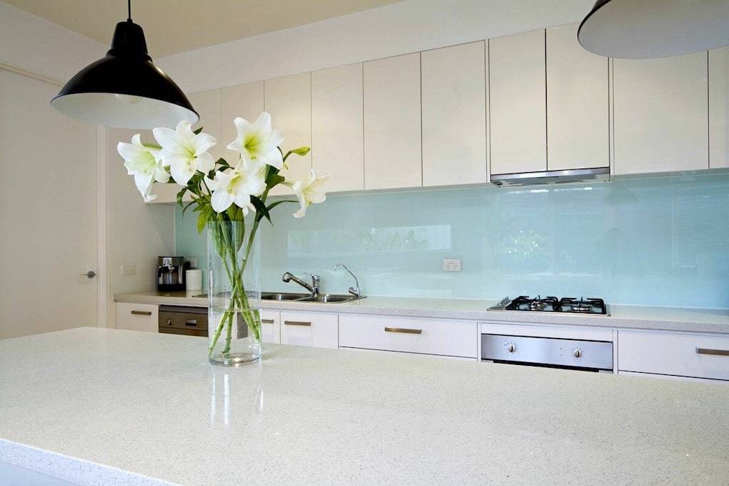 Этот прочный материал идеален для газовой плиты, ему не страшны ни нагрев, ни пар. Современные технологии позволяют выпускать стеклянные панели длиной до трех метров — на стене будет минимум стыков, это очень удобно в уходе.