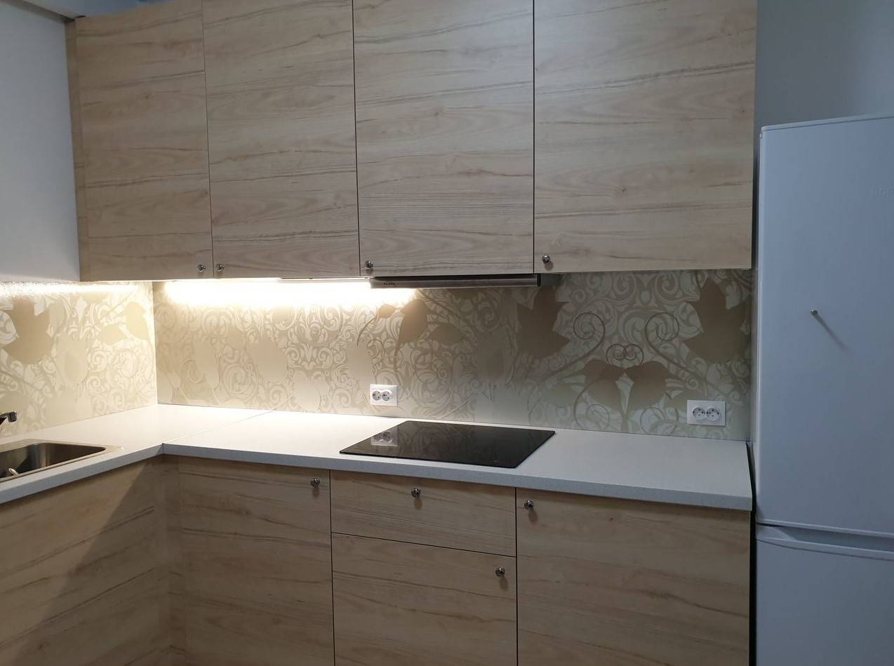 Однако учтите, что впечатление зависит от качества печати. Цена может достигать полутора тысяч рублей за квадратный метр принта. Мы рекомендуем не экономить — размытая картинка вряд ли создаст нужную фактуру и заметно удешевит впечатление от вашей кухни.