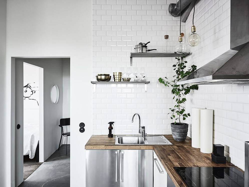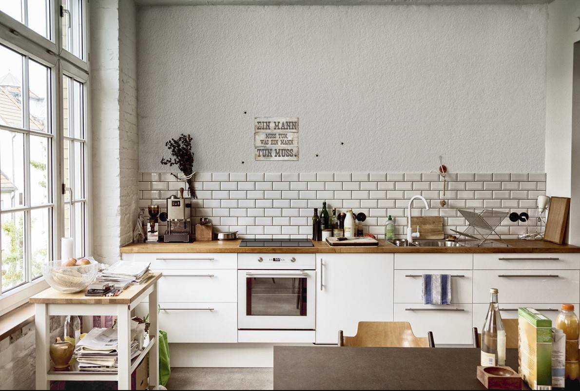 Если же вы решили сделать кухню просторнее и вообще отказались от верха, то лучше всего продолжить фартук до самого потолка. Такой дизайн привносит в интерьер симпатичные средиземноморские или скандинавские нотки, где ценится свободное пространство и легкость оформления.