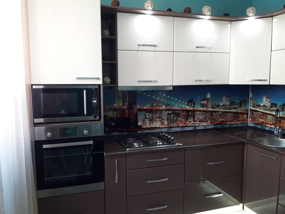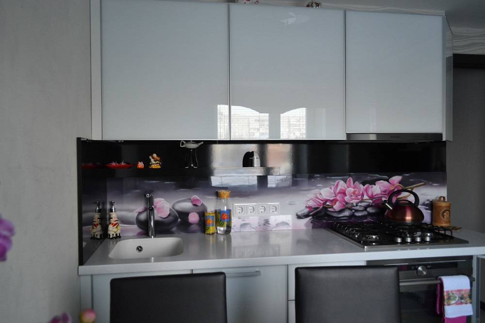 Скинали: может идеально вписаться в любой интерьер, за счёт применения фотопечати. Также помните, что вы можете выбрать простое бесцветное стекло, и тогда из под него будет видна любая отделка. Отличное современное решение.