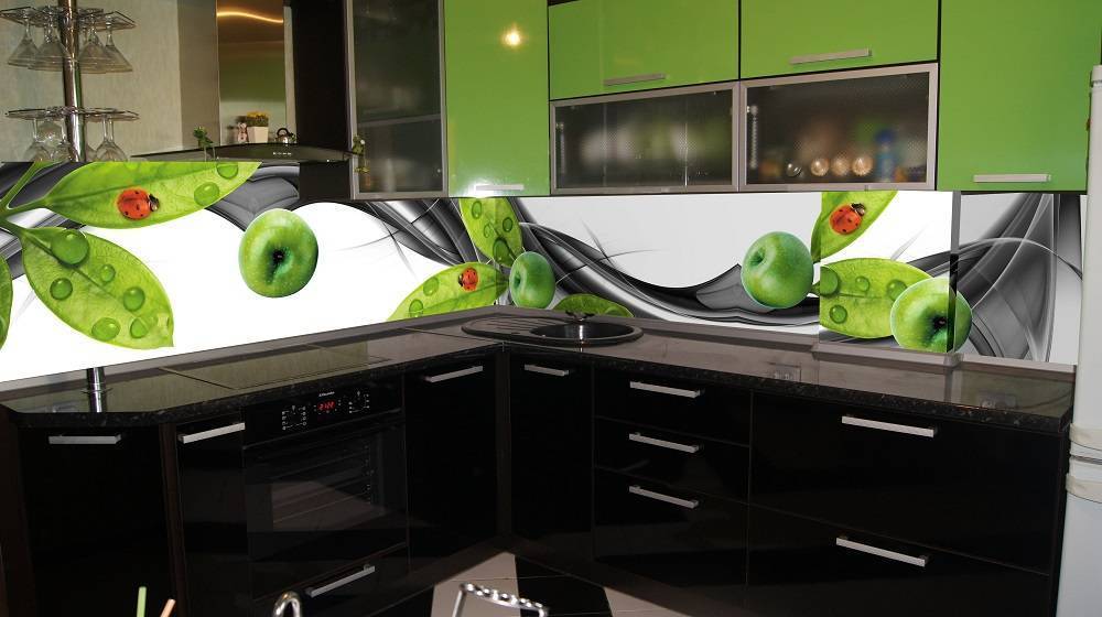Это кажется небольшим, но при таких размерах стекло уже начинает отливать зеленым.Если для выбранного стиля кухонного интерьера этот оттенок не подходит, придется купить осветленные или, напротив, тонированные панели. Но чаще заказчики отдают предпочтение экранам из стекла с нанесенным на обратную сторону красивым рисунком.